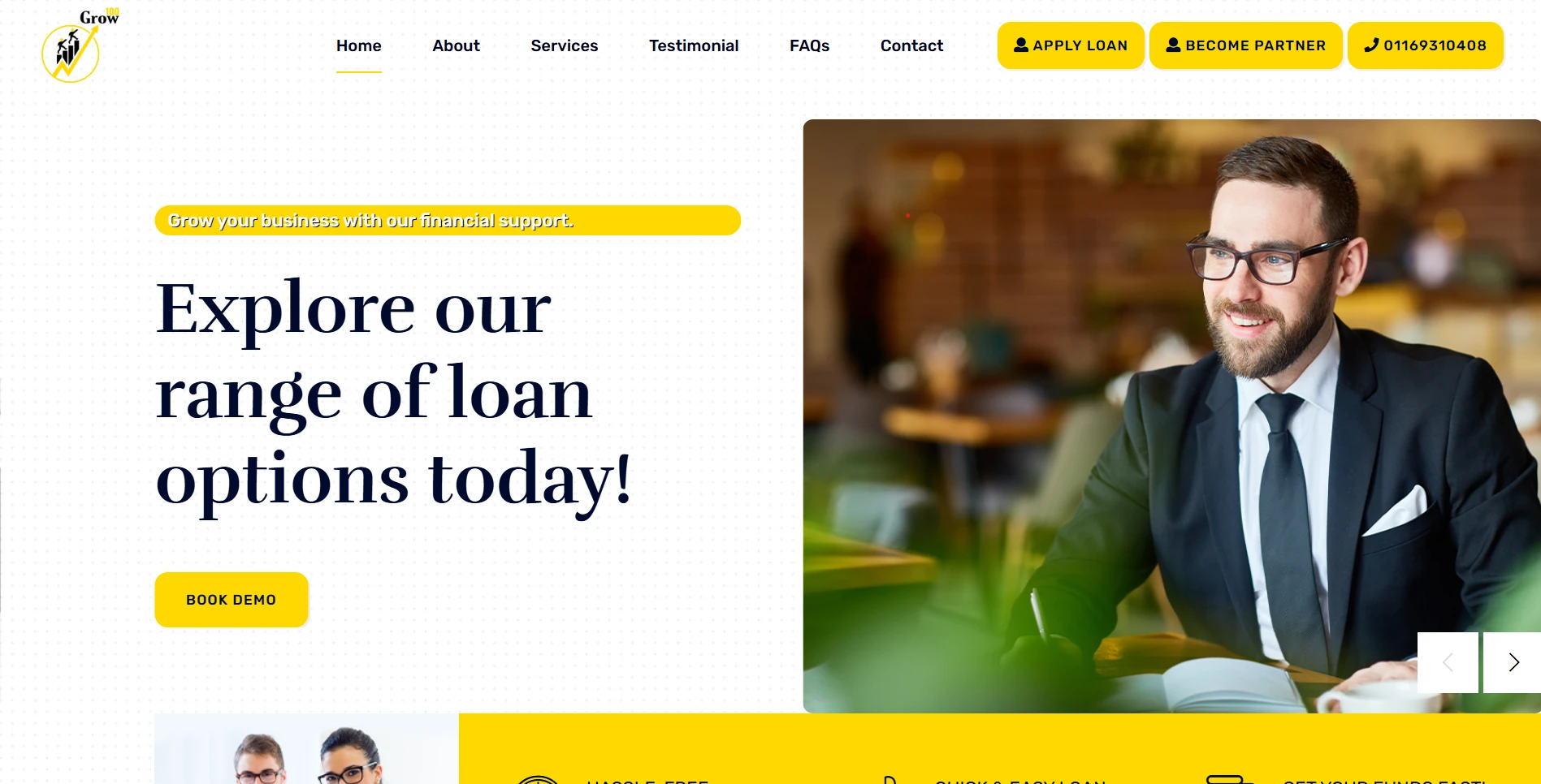 A website for provide financial loan services with admin panel for managing partners and loan applications
